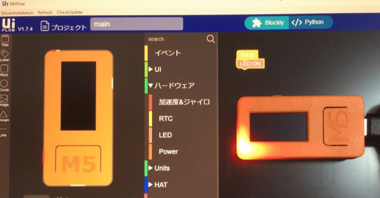 UIFlow-Desktop-IDE を起動したら、娘が進研ゼミのプログラミングでやってたみたいな画面が出てきたので、見た目がわかりやすそうなやつ~って探して、こんなの出来ました🤩
